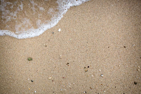 Wave foam of sea on brown sandy beach in summer season, Thailand