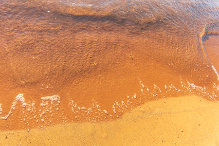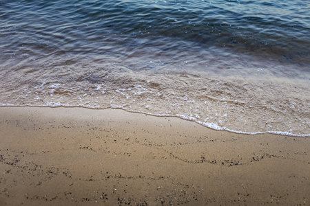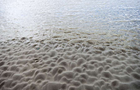 sea water on sandy beach closeup, natural daylight