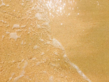Clean sea water wave on clear fine sand beach, nature concept background, outdoor day light