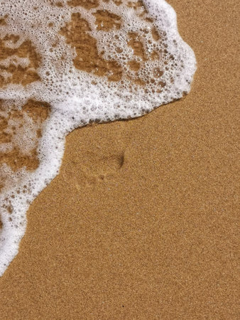 Foamy water on shore. Wet sand on the beach. Island amidst sea. Relax and forget about problems.
