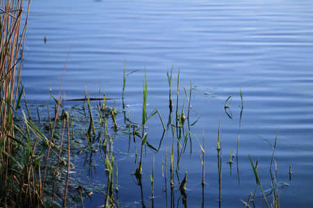 Vegetation in the vicinity of forest lake. Close up.