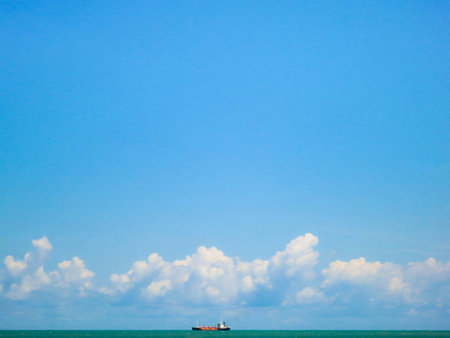 Blue sea sky white cloud and boat in middle ocean