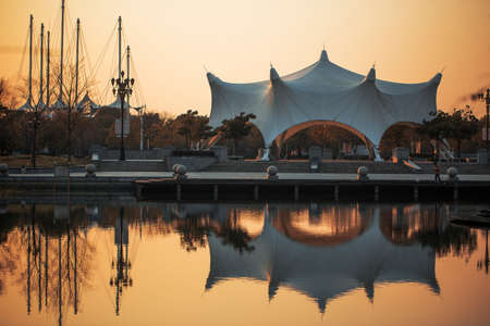 Water gazebo and sunset at a lake in Putrajaya, Malaysia