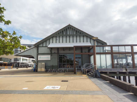 Newcastle, Australia - July 30, 2020: Exterior view of Honeysuckle Hotel with cloudy sky.