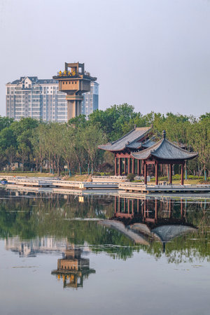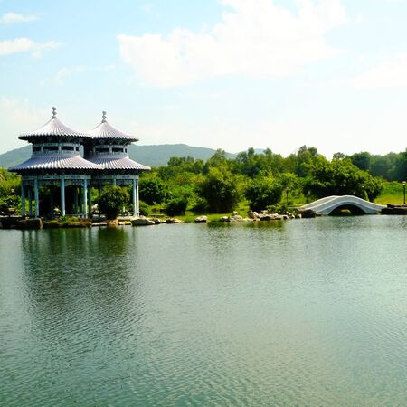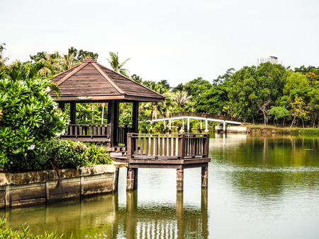 Chinese pavilion at the lake. Udon Thani, Thailand