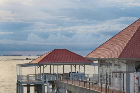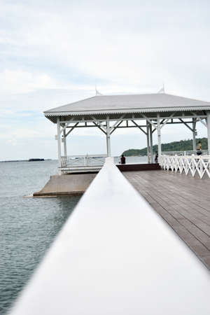 Wood waterfront pavilion in the sichang island, chonburi, Thailand