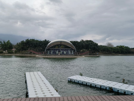 Public Stage at Cyberjaya Lake, Selangor, Malaysia. This building was located inside The Cyberjaya Lake Garden. The Lake Gardens is now gaining popularity amongst the local community.