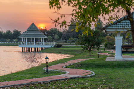 Water path With the sun shining in the evening