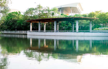 Public Stage at Cyberjaya Lake, Selangor, Malaysia. This building was located inside The Cyberjaya Lake Garden. The Lake Gardens is now gaining popularity amongst the local community.