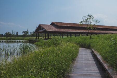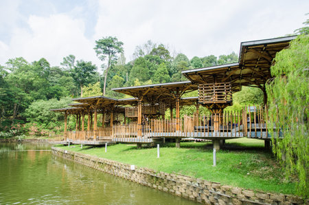 Kuala Lumpur,Malaysia – August 31,2018 : Scenic view of the Kuala Lumpur Perdana Botanical Gardens, featuring the view of the Bamboo Playhouse.
