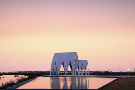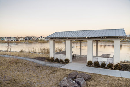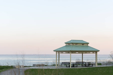 Pavillion near Oakville at Lake Ontario with beautiful pastell colors during sunset