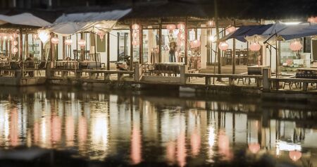 Chinese hotel and restaurant at Zhouzhuang at the night. China