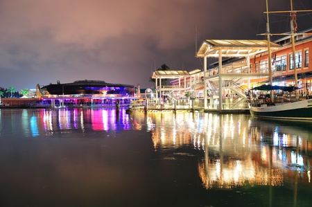 MIAMI, FL - FEB 8: Bayside Marketplace at night on February 8, 2012 in Miami, Florida. It is a festival marketplace and the top entertainment complex in Downtown Miami attracting 15M people annually.