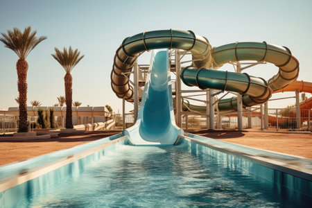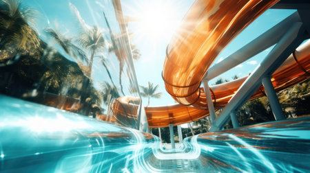 Colorful water slides in aqua park. Family-friendly attractions for summer fun and adventure. Generative AI