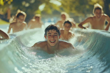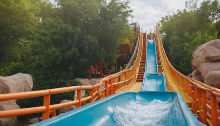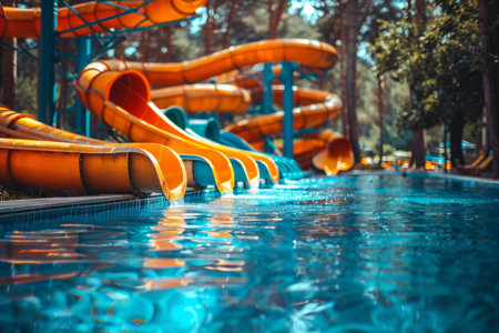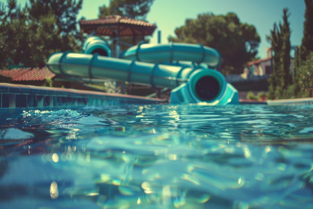 Dive into the thrilling experience of water slides at a vibrant family pool!