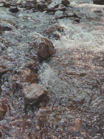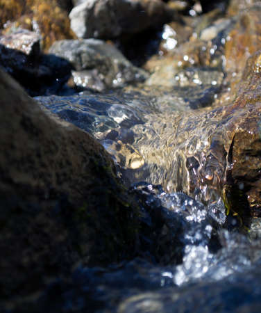 Close up of river stream on stones.