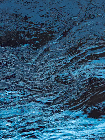 Blue Flowing Water Surface with Dynamic Ripples and Reflections, Abstract Natural Background, Fresh Clean Texture, Energy and Motion Concept
