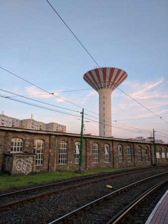 BUDAPEST, HUNGARY - Apr 18, 2018: Csepel HÉV station water tower in Budapest, Hungary