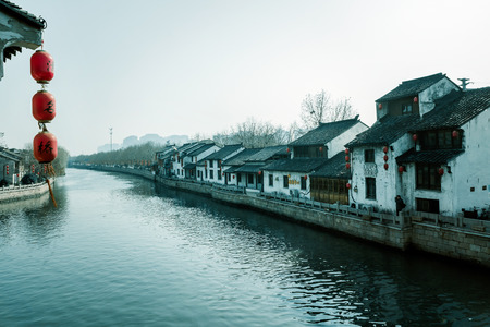 Traditional houses along the canal in Suzhou, Jiangsu Province, China.