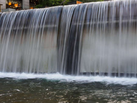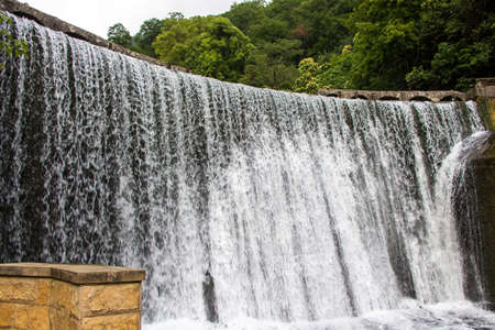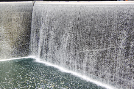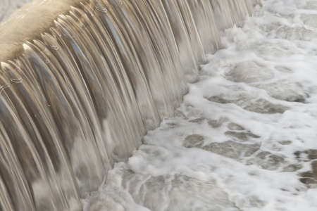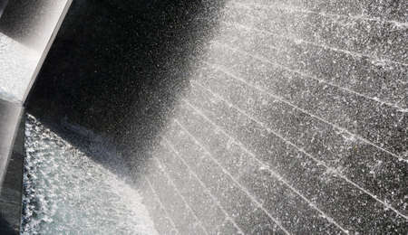 Dam to regulate the water level in the river. Falling water monochrome with strong bursts