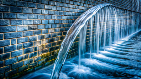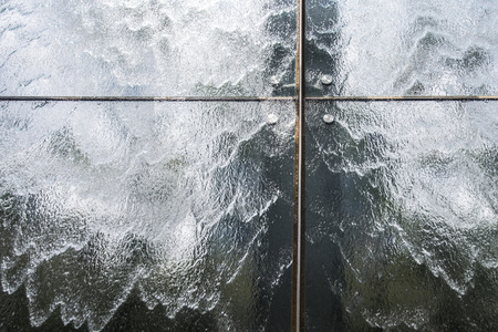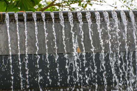 running water on stone background texture. Abstraction waterfall, fountain running water