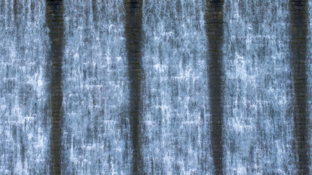 Water cascading down the face of a dam, forming a breathtaking waterfall as excess water is released from the reservoir.