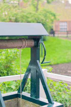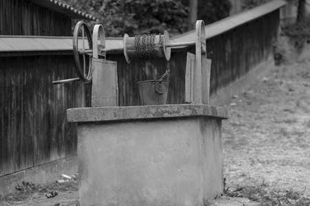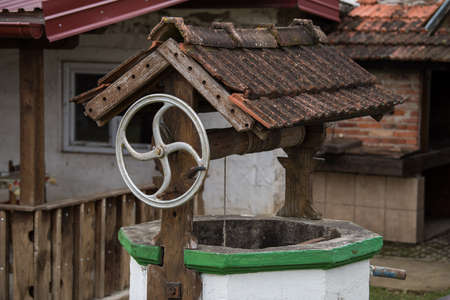 Draw well in European village close up with selective focus. Countryside lifestyle concept