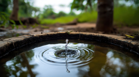 A serene well with minimal water, reflecting nature beauty
