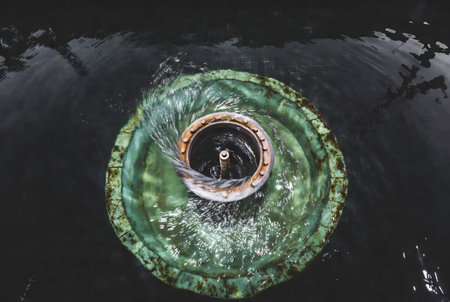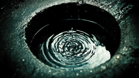 AI Generated. Water Flowing from Pipe into Calm Water Body
