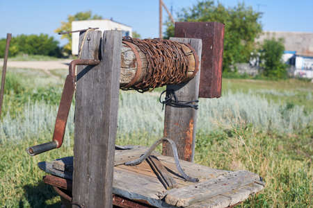 An old well at the farm. Well for drawing water located in the countryside.