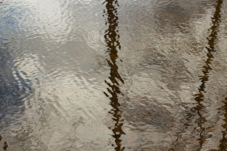 Water in spring. waves on surface. spring puddle. Details of nature. Ripples on water.