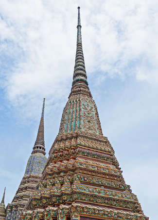Chedis decorated with tiles, Wat Pho. Thailand