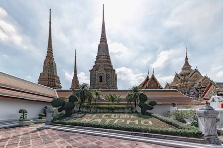Wat Pho temple of budhist with beautiful art of pagoda locate in Bangkok city Thailand