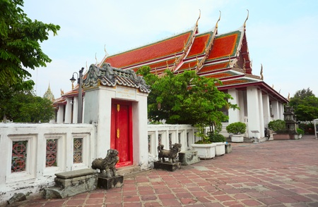 church in Wat Pho or Temple of reclining Buddha in sky background