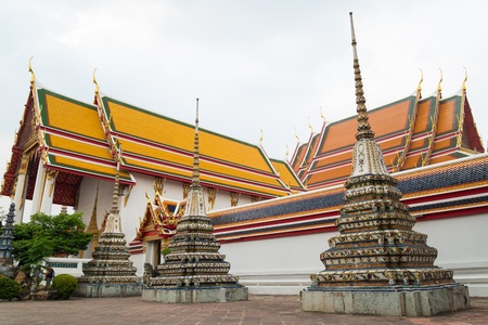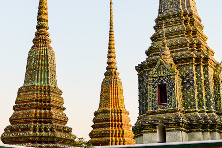 Beautifull decorated stupas and pagoda in Wat Pho temple, Bangkok. Thailand