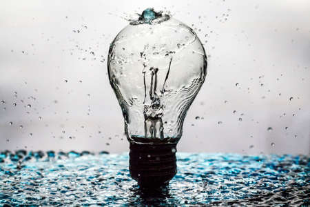 A water splash forms around a glowing light bulb, emphasizing the connection between ideas and fluidity, symbolizing creativity and innovation.