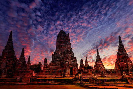 Wat Temple at sunset, Chaiwattanaram, Thailand