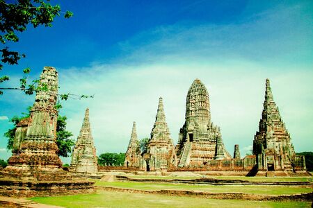 Landmark,vintage background wat Chaiwatthanaram The old temple of Ayutthaya period.