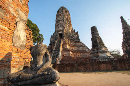 The Prang and Buddha statue in Wat Chaiwattanaram temple in Ayutthaya Historical Park , Ayutthaya province, Thailand