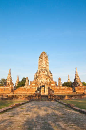 Wat Chai Wattanaram in Ayutthaya in sunset time.