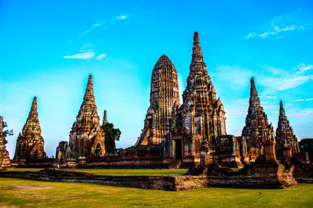 the ancient temple of Wat Chaiwatthanaram in Ayutthaya. The ancient capital of kingdom siam.