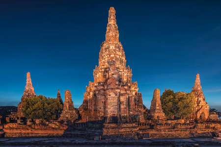 Wat Chaiwatthanaram at twilight in Ayutthaya,Thailand