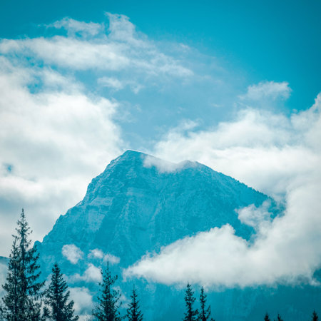 Foggy and cloudy mountains scenery in the Alps