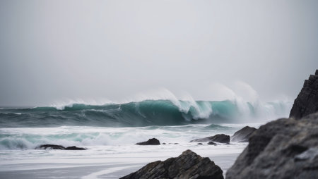 AI Generated. Stormy Sea Waves Crash on Rocky Shoreline