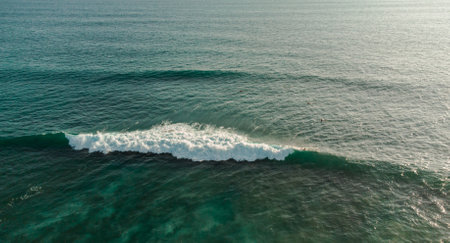 A Stunning Aerial View of a Perfect Wave Breaking on a Reef. Concept Aerial Photography, Ocean Waves, Reef, Nature Beauty, Drone Shot