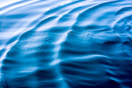 Water surface close up Abstract wavy liquid texture background Dark blue reflecting fluid detail Turbulent flow movement pattern design.
