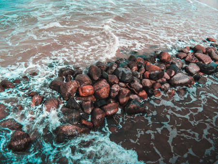 Sea waves wash the stones on the shore. Tropical vacation. High quality photo