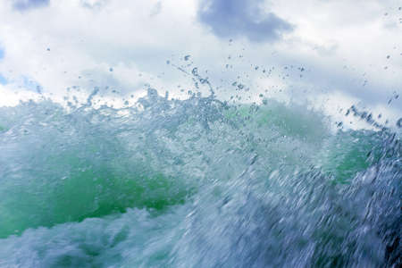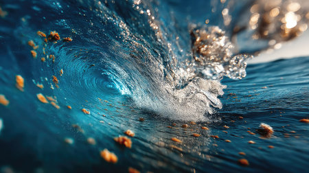 Dynamic Ocean Wave Patterns with Sparkling Underwater Bubbles and Splashes of Blue Water Droplets