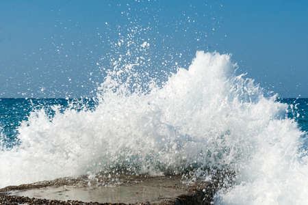 Waves of the Mediterranean Sea breaking on the shore of the island of Crete
