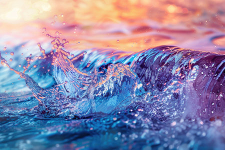 A stunning close-up of a water splash, capturing the dynamic movement and shimmering droplets. This image evokes feelings of tranquility, beauty, and connection to nature, perfect for projects focused on nature, water, and refreshment.